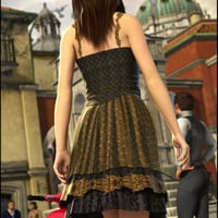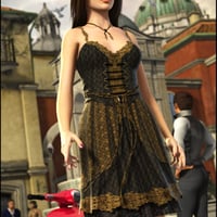 Annalee’s wardrobe adds two exquisite 3D dress textures to Daiquiri Dress for V4 and Unimesh Fits. Choose between a black decorative fabric with gold lace trim, or a white dress with bold red trimmings. Either will make your model enticing.
