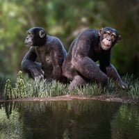 Intelligent, opportunist, living in social communities of several dozen animals, Chimpanzees are also thought to share with us a common ancestor who lived some four to eight million years ago.
