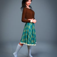 Embrace the rich colors of the autumn season with the AP dForce Autumn Long-Sleeve Dress set—a cozy and stylish outfit designed for Genesis 9 characters. Perfect for autumn scenes, this set includes a dForce-enabled skirt, top, and matching socks, along with a versatile selection of material presets for the top and skirt to complement any fall setting.