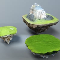 - 3 large floating islands – each with unique rocky understructures and lush grass tops