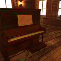 This detailed saloon includes a working bar, tables with playing cards, a woodstove for warmth, and an upright piano ready to set the mood.