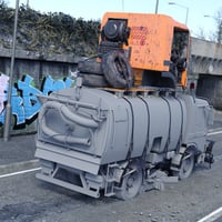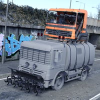 An apocalyptic Add-On for The Sweepasaurus Rex Street Sweeper Truck, complete with turret, wheel armour, front armour and light bar. Textures for bloody and default options for all props are included, as well as a bloody texture option for the base truck.