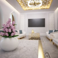 This is a representation of an Arabic Living Room. Gorgeous gold accents that provides great finishing touches, Arabic majlis that highly complements the interior.