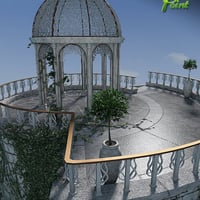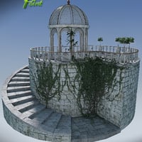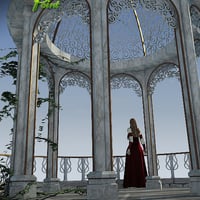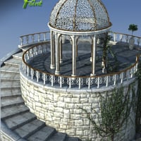 An ornate Gazebo with platform and steps. Includes ornamental trees and ivy. Comes with a light set for both Poser and DAZ Studio.