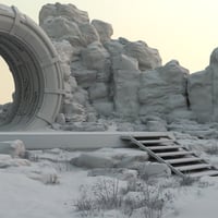 A Sci-Fi outpost set amongst the rocks of a winter environment