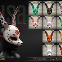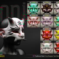 Artisan Festival Masks for Genesis 8 is a set of 4 masks designed by merging the styles of a Japanese and Venice Festival Mask. Each mask comes with 2 base materials: paper pulp and leather. However, by building the design around the Iray 4-Layer Uber PBR Shader, we have ensured a highly customizable design right from the comfort of the Daz Studio Interface.