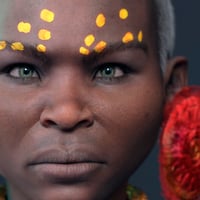 Ashanti features a beautifully sculpted head and body shape, detailed hand and foot morphs, and custom FiberMesh eyebrows. Her realistic, deep-toned skin, a wide variety of expressive eye colors, and unique ethnic markings inspired by her ancestral roots make her a truly one-of-a-kind character for Genesis 9.