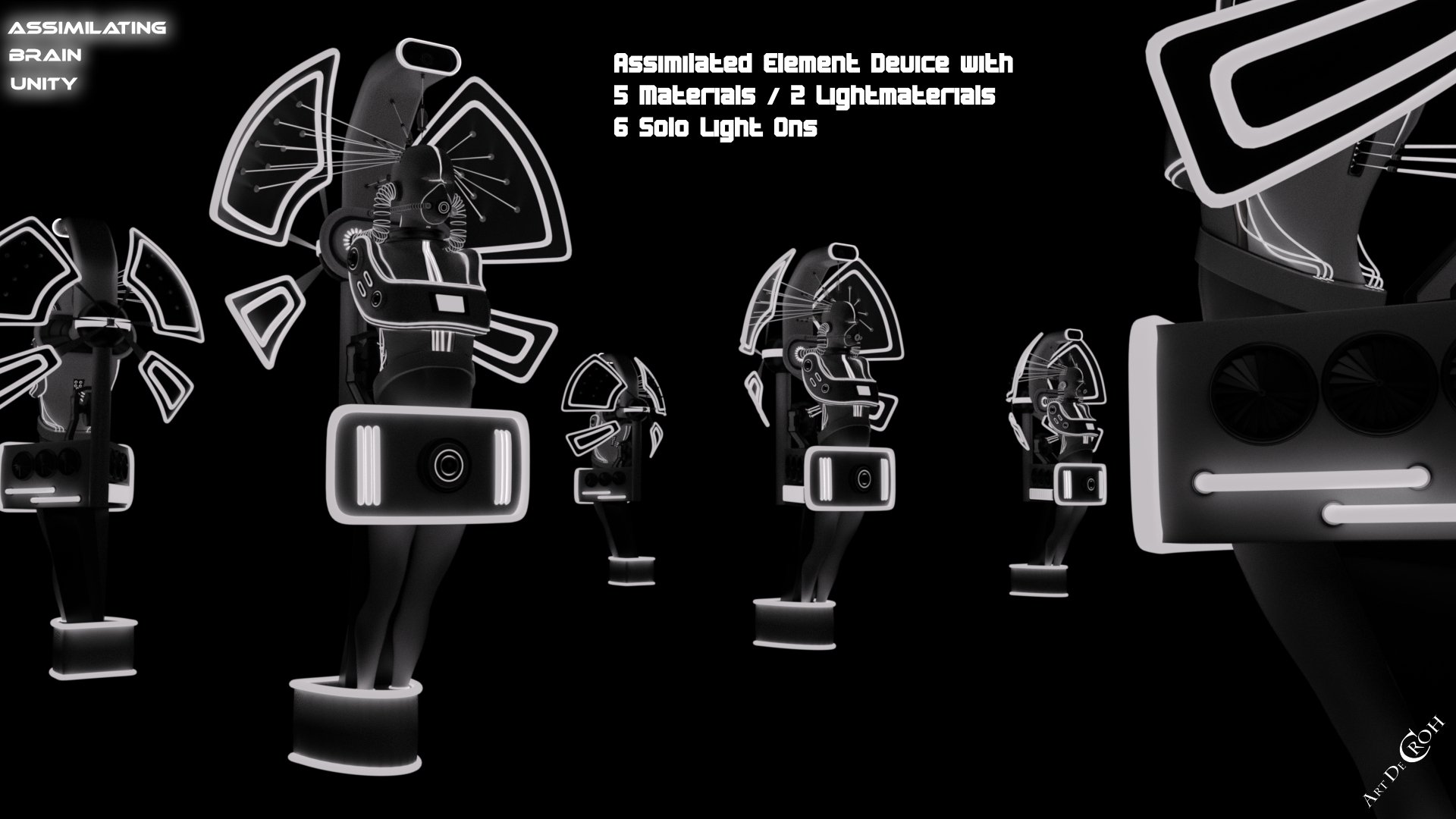 Assimilating Brain Unity, a Sci-Fi construction set of the ultimate neuro-biological command unity with different texture sets: white, grey, dark grey and black. Ideal for any of your post-human scenes. Modular design allows many combination of props and architectural elements to build your own high tech interior. The included 6 scenes with cameras (a total of 21) make it easy to create amazing renders.