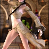 Asteria is a beautiful warrior woman sworn to protect royalty. She wears sparkling chiffon in earthy tones for show, and does battle in leopard skin and leather. This texture set for Eweyai for V4 and Unimesh Fits includes intricate details such as chainmail, studs, stitching, and sparkling gold metalwork, giving these 3D fantasy styles an exquisite magical look.