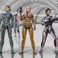 It comes with 10 wearable and material presets in metals and shiny plastics, in both Iray and 3Delight shaders. Also 6 light maps for the Iray to get that glowing light effect. Also coming, is the Genesis 3 Male version plus a war torn material pack. This give you a totally new level of detail. A must have for all you sci-fi fans.