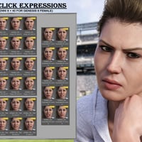 This pack contains 40 One-click presets for Jenni 8 and 40 for Genesis 8 Female; use them to quickly load an expression.