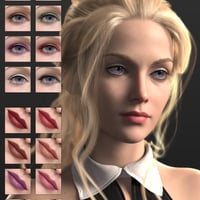 Marielle for Genesis 9 includes face and body shape, head and body HD details, PBR materials, 8 L.I.E. lip colors, 10 L.I.E. makeup options, eye color, fibermesh eyebrows, and normal maps.