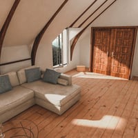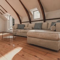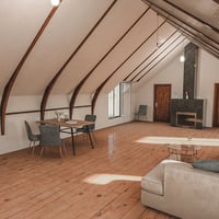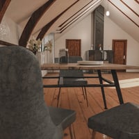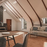 Featuring hardwood floors and lovely architectural wooden beams, the Attic Space will be your characters' favorite room in the house.