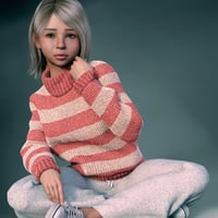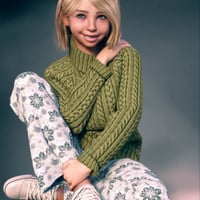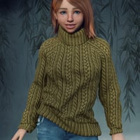 The chunky jersey is loose-fitting and cozy, made of thick-knit material. It has a turtleneck with oversized sleeves that gather at the wrists. The included color presets complement the other clothing items perfectly.