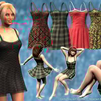 The Skirt area of the dress uses auto follow, but also has 17 movement morphs for flaring and assisting with sitting & lying down type poses.