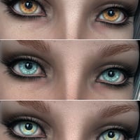 This set of 3D eye styles contains 18 realistic iris textures and 14 fantasy iris textures. You will also find 7 sclera options, and 4 eye reflections. These eye textures were optimized for Genesis 2 Female but will also work perfectly with the Genesis 2 Male figures.