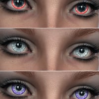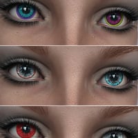 This set contains various sci-fi and fantasy 3D eye textures that were all textured from different photos or created in Photoshop. You will also find 8 sci-fi eye reflections, and a set of sci-fi hetrochromia eyes. Files are included for use in both Poser and DAZ Studio. These eye textures were optimized for Genesis 2 Female but will also work perfectly with the Genesis 2 Male.