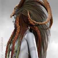 Axarra Headdress is another highly detailed fantasy hair set by BadKittehCo. This set contains a High Resolution and a low resolution set of horns, so you can use it in closeups, and in more crowded scenes. Axarra Headdress is a wonderful mix and match choice with many fantasy clothing sets available for DAZ Studio.