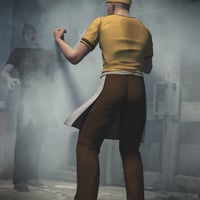 Unleash the zombie horror at your local diner with B-Movie Short Order Cook. These textures for the 3D Short Order Cook outfit include three versions: a clean set, a bloodied slasher-victim set, and a gruesome zombie set.