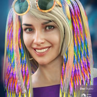 The Starter Bundle adds a bit of boho style, which is combined with modern raver and music festival culture. Free flowing and colorful clothing options, bright and loud hairstyle, and a flamboyant pose set helps Babina express her free-spirited nature.