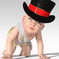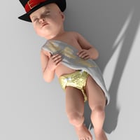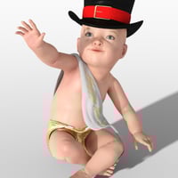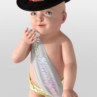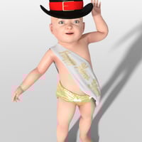 Ring in the new year in your renders with "Baby New Year" for Sixus1's - The Baby for Genesis 8 Female! Adorable and festive, this kit provides our daring little tyke with a sassy top hat, flashy gold foil material for the diaper included in the base baby kit, and the "Happy New Year" sash with alternate gold foil, gold glow, rainbow and rainbow glow materials, all built from cutting edge PBR texture methods for the absolute best Iray experience, right out of the box!