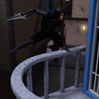 Backstab Alley is a versatile environment for a huge variety of render styles. A narrow street between two storey buildings set in a medieval or fantasy town consisting of eight different buildings made up as separate props. Camera angles are a breeze to set up by hiding or removing individual props as desired.