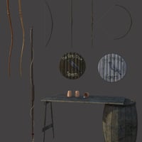 But that's not all, folks! Backstab Alley also comes with several incredibly useful medieval or fantasy props. There's a kont, which is an old bag used way back in the time of Vikings, which can be carried or used as a stool. The lid opens on a leather hinge and the lock pin can be moved or placed in the lock on the front. A short bow is included, which has morphs for unstringing and winding up, but you can also pose it as you wish as it's fully rigged as a rope.