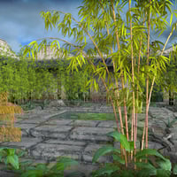 The natural shape of bamboo leaves made it possible to use real geometry for the leaves instead of squares with a transparency map. This means faster render times in both DAZ Studio and Poser.