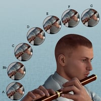 The first is a four section, one key flute made from rosewood. The second is a theorbo, or baroque lute. The third is the king of instruments, the bass viol, or Viola da Gamba, which comes with a snakewood bow and beautifully carved scroll and pegbox.