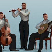 DAZ Studio Users: There is no longer a separate DAZ Studio installer for these Presets. DAZ Studio will automatically apply the DAZ Studio version of the Material Presets, giving you the correct DAZ Studio look to your Baroque Trio. The poses included in this set are optimized for poser and may not give you the best result in DAZ Studio. Some tweaking may be required. - 4 Props (.PP2 and .OBJ)