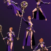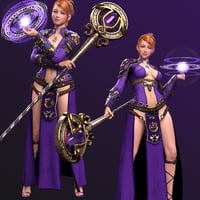 Always with the intention of offering complete solutions for the artists who trust us, we return with a high fantasy outfit consisting of 6 pieces and 6 color options. A set of 25 poses accompanied by 2 props (Staff and Spell) that will help you create incredible and dynamic scenes. It also includes a high ponytail hairstyle that matches the entire spirit of the product, with 20 color options. Complete solutions for artists!