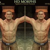 The HD morphs can be dialed in at different values for more variety. We have also included a custom set of spec maps to get the best result out of our LIE Material Presets. The LIE Material Presets include a wound texture for the 21 HD Morphs, 18 blood LIE textures for the wounds and 8 additional LIE blood presets.