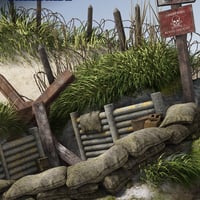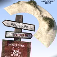 A highly detailed war time style beach barricade vignette. With individual props including metal ammo case, jerry can, oil dump, wooden ammo box, trench wall, sandbags, spent rounds, barbed wire fencing, signpost, sand dunes, wooden pallet, wooden planks, reeds, detailed grass and tank barricade. Comes fully optimized for DAZ Studio 4.8+ and Iray, also included 3Delight Materials.
