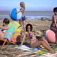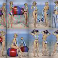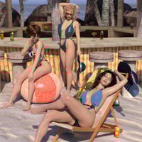 The set includes the most needed props, like a huge beach ball for fun, a lounger for relaxing, a beach towel for sunbathing and sun lotion as protection. Besides the props, you will also get sun lotion options for Genesis 8 Female(s). The set also includes several material presets for the clothing, the props and many transparency options for the sun lotion.