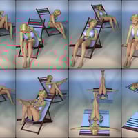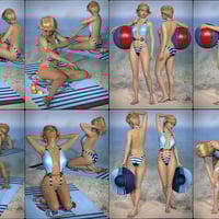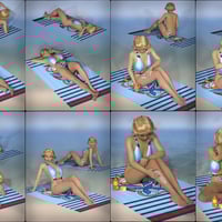 But that's not all! The set also includes poses! Laying on the towel, applying sun lotion, standing, relaxing, wondering around. 32 poses, 8 prop poses, 5 partial sun lotion applying poses and their mirrored versions for Genesis 8 Female.