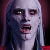 The Vampire detail morphs, fangs, Vampire eyes, and all of the blood overlays can be used with any Genesis 9 character. So you can create scenes with lots of different Vamps. Plus, they both have extra material sets to make them human too!