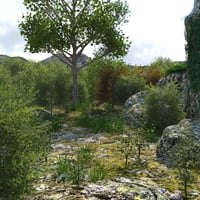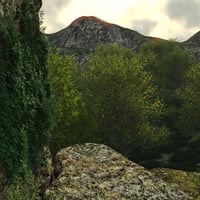 Take your characters to this plateau surrounded by forest with a beautiful view of the mountains on the horizon. Beautiful Horizon has props for you to set up your own scene, so get it and start creating today.