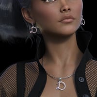 Elevate your 3D scenes with brilliance. This unique earring set is more than just jewelry; it is a statement of individuality, elegance, and versatility. With seven beautifully designed pieces, each featuring sparkling rhinestones, crystals, or miniature gem-like elements, this set gives you endless styling possibilities for any mood, outfit, or occasion. Each earring is crafted in a distinct shape, ranging from a graceful curve, a classic teardrop, a bold 'D' initial, to artistic forms like a blooming flower head, a delicate flower stem, and two uniquely shaped geometric rectangles. These standout designs bring dimension and creativity to your render and immediately draw attention to your character. Ideal for fashion visualizations, product showcases, or character styling, this set offers customizable metal and rhinestone options to match any artistic vision.