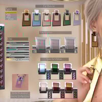 You can apply the metal options (silver, silver-dirt, gold, light gold, antique and bronze) with the full material presets, while the rhinestones (ruby, rose, purple, green, amber/topaz/peach, aqua), can be applied separately with the partial material presets, so you can mix the styles to your taste. There are also included some patterns as partial presets, making the simple metal part more unique.