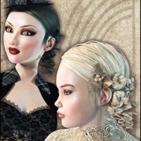 Belle Arum Hair is an asymmetrical up-do inspired by catwalk styles, but still has a romantic Belle Epoque feel. It should be usable both for high-end fashion shots, pinup, fantasy, and historical sets, or without the curls it can be used as a funky relaxed style.