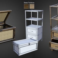 B.E.T.T.Y. Rattan Bedroom is a set of 12 detailed Rattan Bedroom Furniture props.