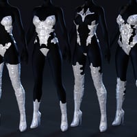 The Binary Nymphea Outfit for Genesis 8.1 Female is a highly-customizable 5-piece outfit. It comes with 3 material options and numerous fits and adjustment morphs.