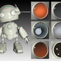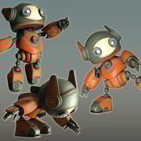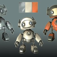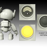 Bit Bot, a stable companion for an uncertain universe. Three material sets with six eye material options. Three chest gage material options. Some I am told even find him, well, cute. Fully Rigged easy to pose and comes ready with 6 poses presets.