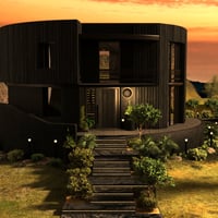 Sitting in a green mountain nature, this modern Round Black House is a really quiet place for retreat - or Party!
