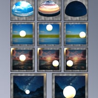 The scenes are in a skydome with sun and come with 3 different moods: daylight, sunset and night. Of course you can change the sky with is a simple click and presets helps you to change the sun position.