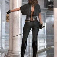 Blackdawn Outfit for Genesis 8 Female(s)includes fine leather detailing and included side props (with sword and hip satchel) to give your character the essentials they need to embark on their next adventure.