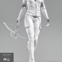 Outfit includes Top, Waist Belt, Pants, Boots, Gloves, Cross Bow and Arrow so she's sure to hit the mark in your next scene.