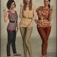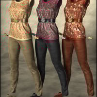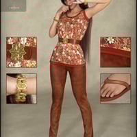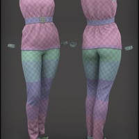 Four conforming clothing figures: shirt, pants, belt, and sandals, plus a smart prop buckle, and bracelets. The buckle is attached to a rigid follow node on the belt so it will follow your character's shapes but not warp and can be infinitely adjusted with the parameters. You can also load it by itself if you want to use it somewhere else as jewelry.