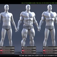 Nearly every user has the Daz 3D Body Morphs packages for their figures. Why not give it added functionality with Body Mixer. This add-on allows you to split up the iconic shapes into upper and lower areas from which you can control the strengths to your liking. You can also remove or exaggerate the shape details for the upper and lower areas, mix and match them with other shapes as well. As a bonus it also includes bend correction JCM's for the Portly and Heavy body shapes.