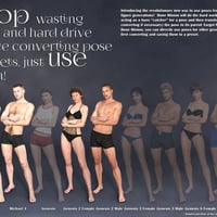 Introducing the revolutionary new way to use poses from different figure generations! Stop wasting time and hard drive space converting pose presets, just use them! With Bone Minion, you can directly use poses for Michael 4 and Victoria 4 without first converting and saving them to a preset. Your Bone Minion will do the hard work for you by acting as a bone "catcher" for a pose and then transferring (and converting if necessary) the pose to its parent Genesis 2 Figure. Simply load the desired Bone Minion (i.e., Victoria 4 Bone Minion for Victoria 4 poses) on your Genesis 2 Figure, select the Bone Minion, and start applying poses!